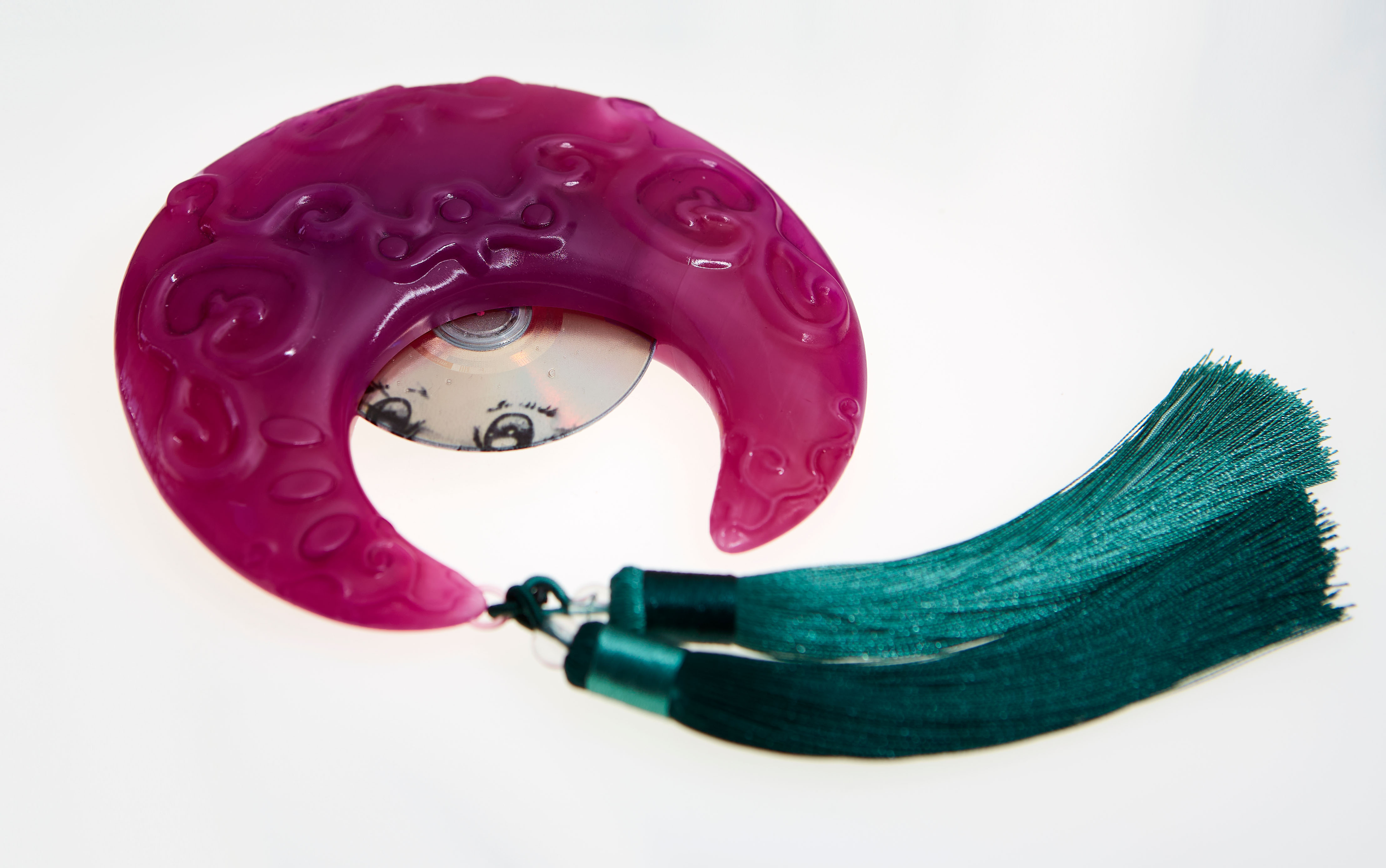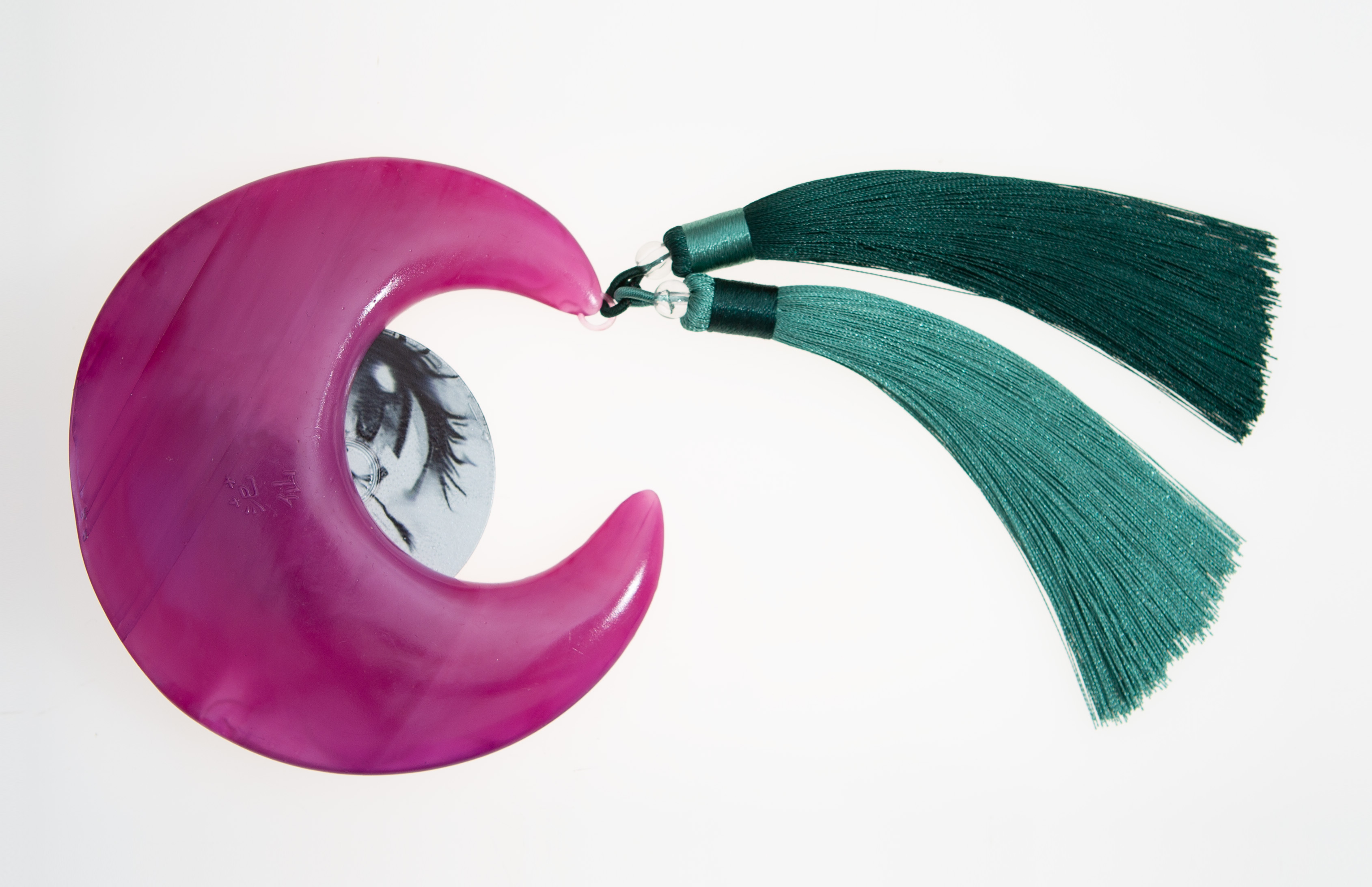 Drawing from the magical girl alter-ego of Sailor Moon and the transformational powers of Pokémon evolutions the works seek to assert the magical potential of being in between, acting as triggers for transformation. They similarly reference videogames of the same era, as outlets for manifesting and exploring new identities, and for the creation of alternate versions the self. In this way the works seek to embody conduits for change. Like Sailor Moon’s Cosmic Crescent Wand or Pokémon evolution stones, they are talismans, amulets and charms - and like videogame cartridges and disks they represent portals into new worlds. They are precious and potent objects loaded with magical potential.
