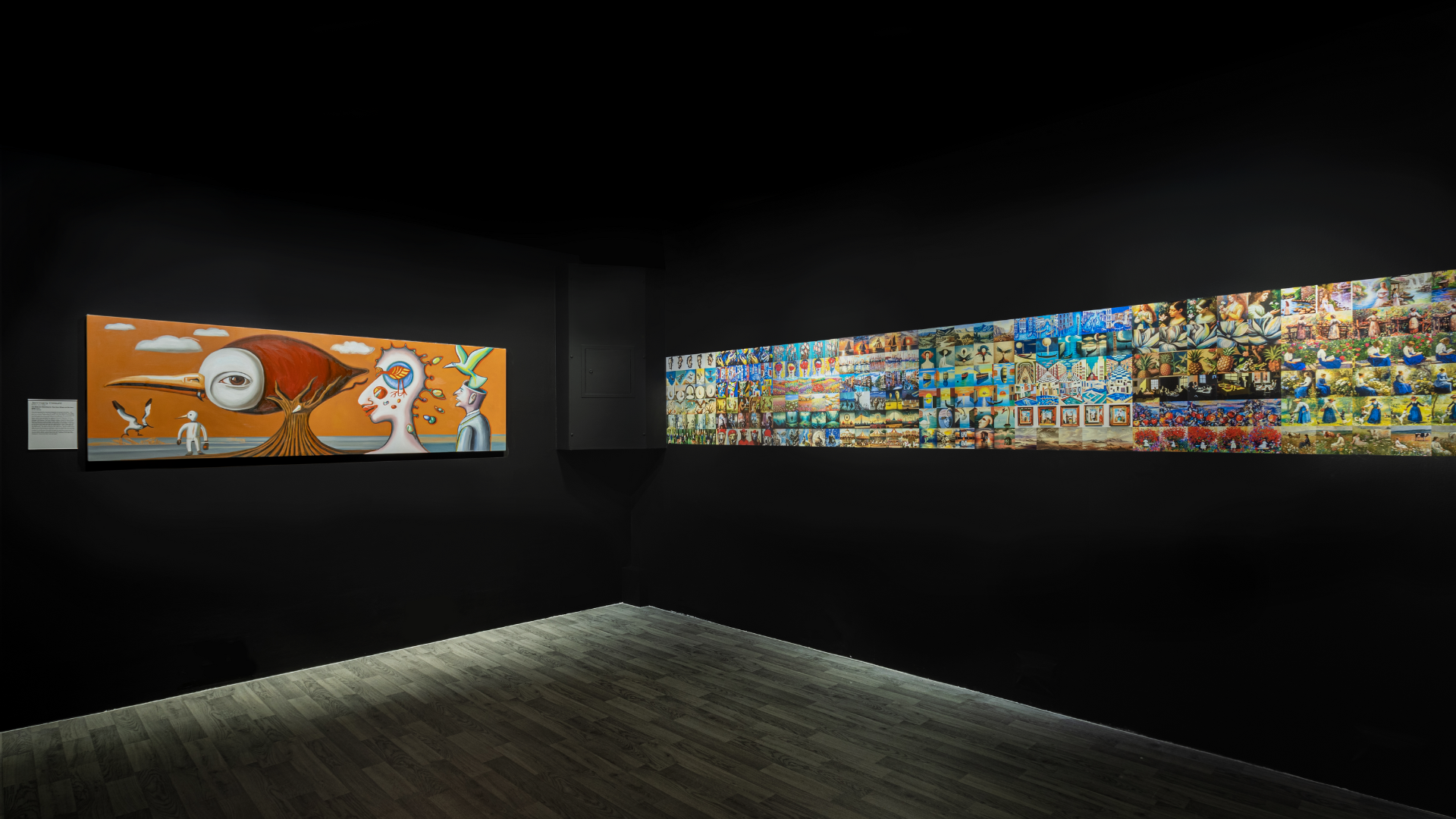 Across a mixed media installation of wallpaper and oil painting, the exhibition displays an amalgamation of surreal imagery that feels at once familiar and remote. The latter becomes explicit with the gradual permeation of the uncanny. A feeling of uncertainty surfaces; just what are we observing? Indicative of their making, and certainly applicable to the arts in general, curiosity will often walk hand-in-hand with new frontiers.The artworks in this exhibition are the direct result of Reben’s experimentations in human-machine collaborations at the forefront of AI technology. Using a custom neural network combined with a text generation AI (GPT-3), descriptions of non-existent artworks are generated. The artist then curates from these outputs and inputs the selected artwork descriptions into text-to-image AIs, such as DALL-E-2. The resultant images are presented alongside the AI generated artwork description. Throughout the process, Reben interjects with punctuation tweaks, curatorial choices and, ultimately, selecting the final images, of which one is chosen by the artist, a curator, or collector to be reproduced by an oil-painting artisan.Following 2021’s impactful AI-Mazing exhibition, I’m Not A Painter will be Reben’s second solo exhibition at Gazelli Art House, the second to be titled by an AI and, excitingly, the first to be accompanied by an AI generated Press Release. This iteration of the series will first debut in Venice as part of the ULTRAMARIN exhibition, curated by Ulrich Schrauth (Artistic Director, VRHAM!).