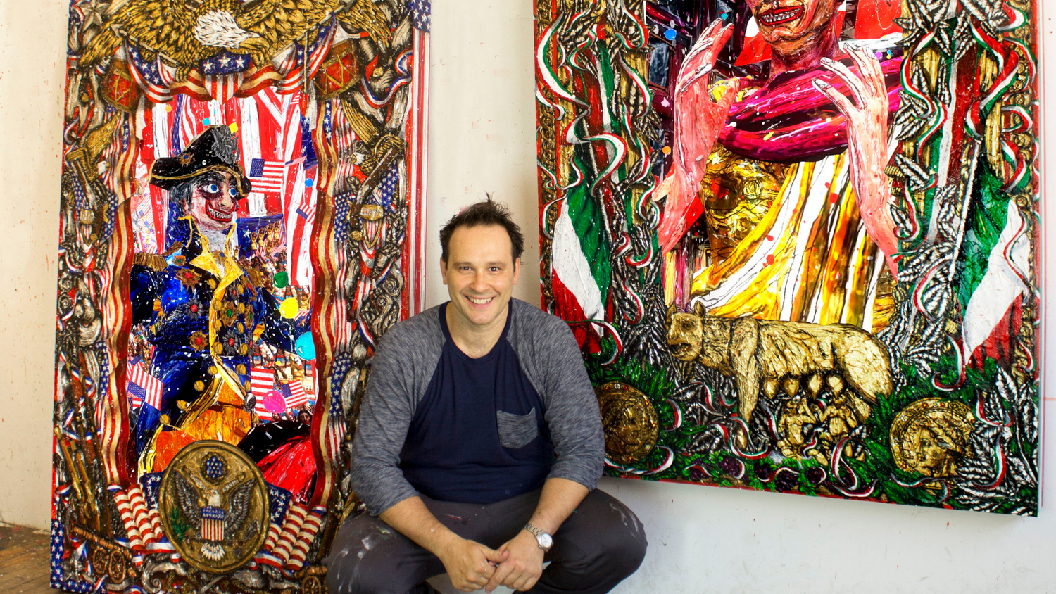 Federico’s exhibitions, which often combine articulate installations composed of different media such as video, drawings, mechanical sculptures and paintings, use bright colors and a satirical aesthetic to portray a dystopian vision of our present day society. Irreverent, surrealistic, and sexually explicit, the videos and the works by Federico Solmi are as he is: extravagant, rowdy and ironic. They are satires about the evilness and the vices that affect contemporary society and mankind. The artist uses images culled from the video game industry, pop culture, and the Internet and collages them with a historical influence to produce original artworks about the seemingly disparate subject at hand. The universe that Solmi likes to represent is the exaltation of a present that is crumbling apart. His work is a criticism of a system that approves and trusts without questioning the fragile foundation on which our culture and post-modernist society is based.