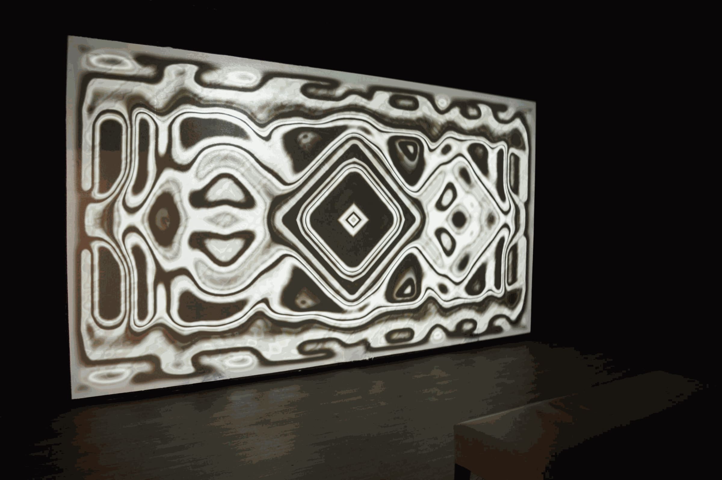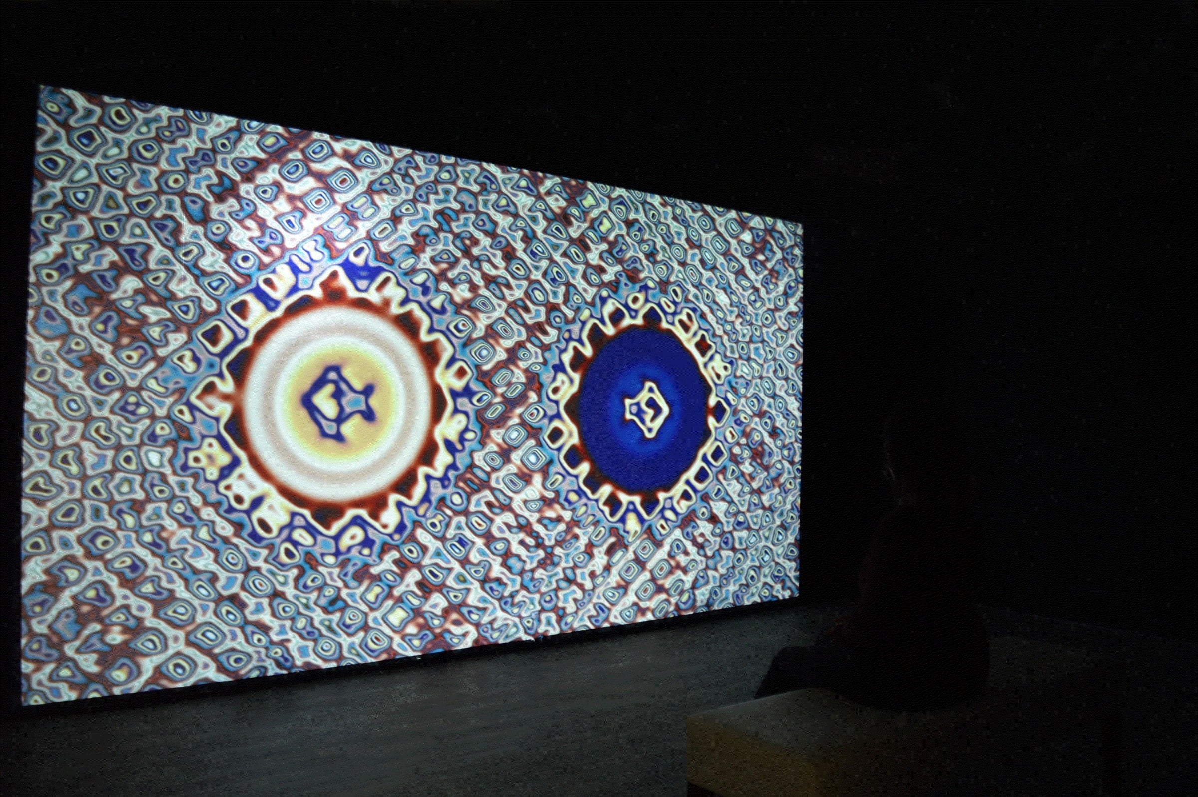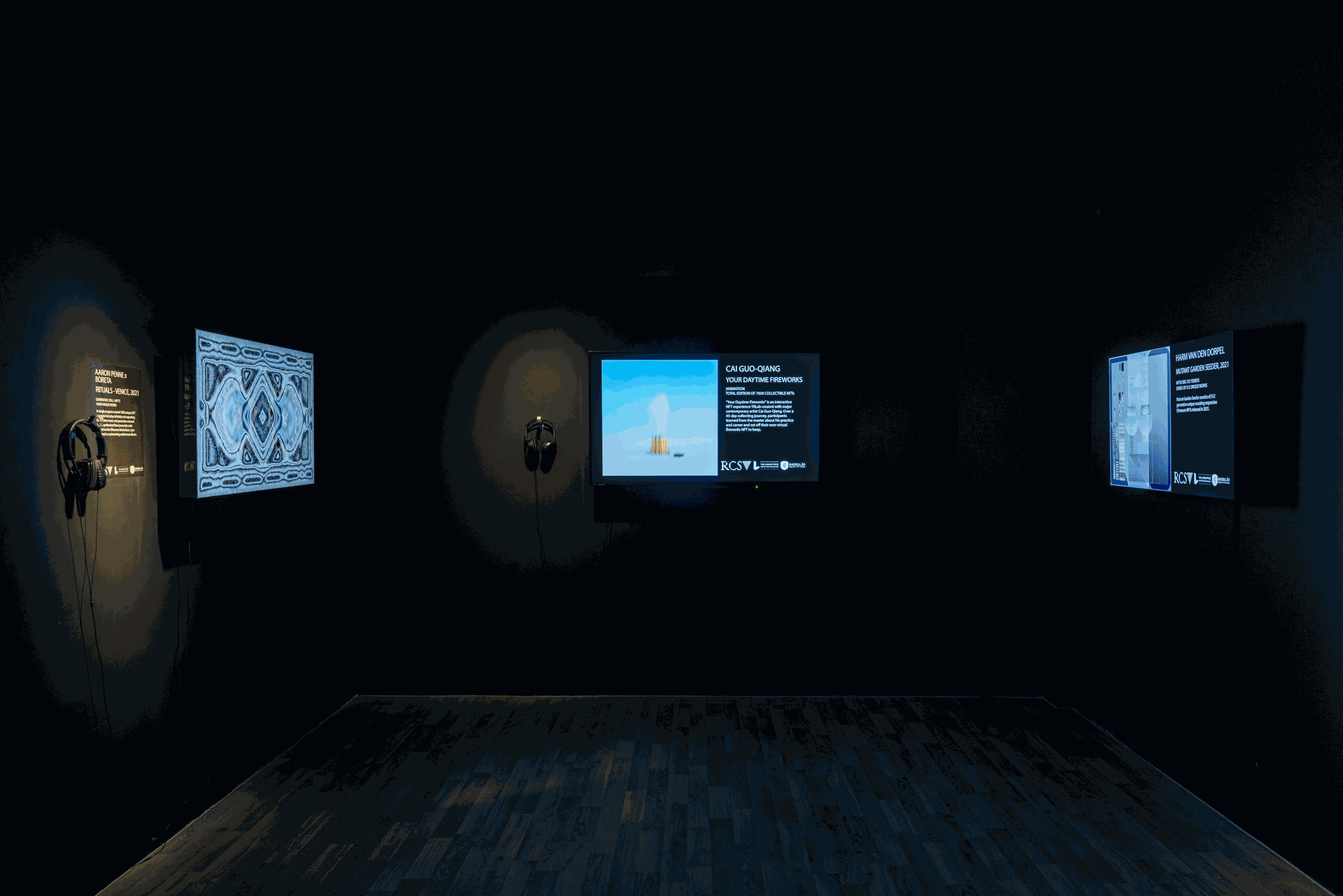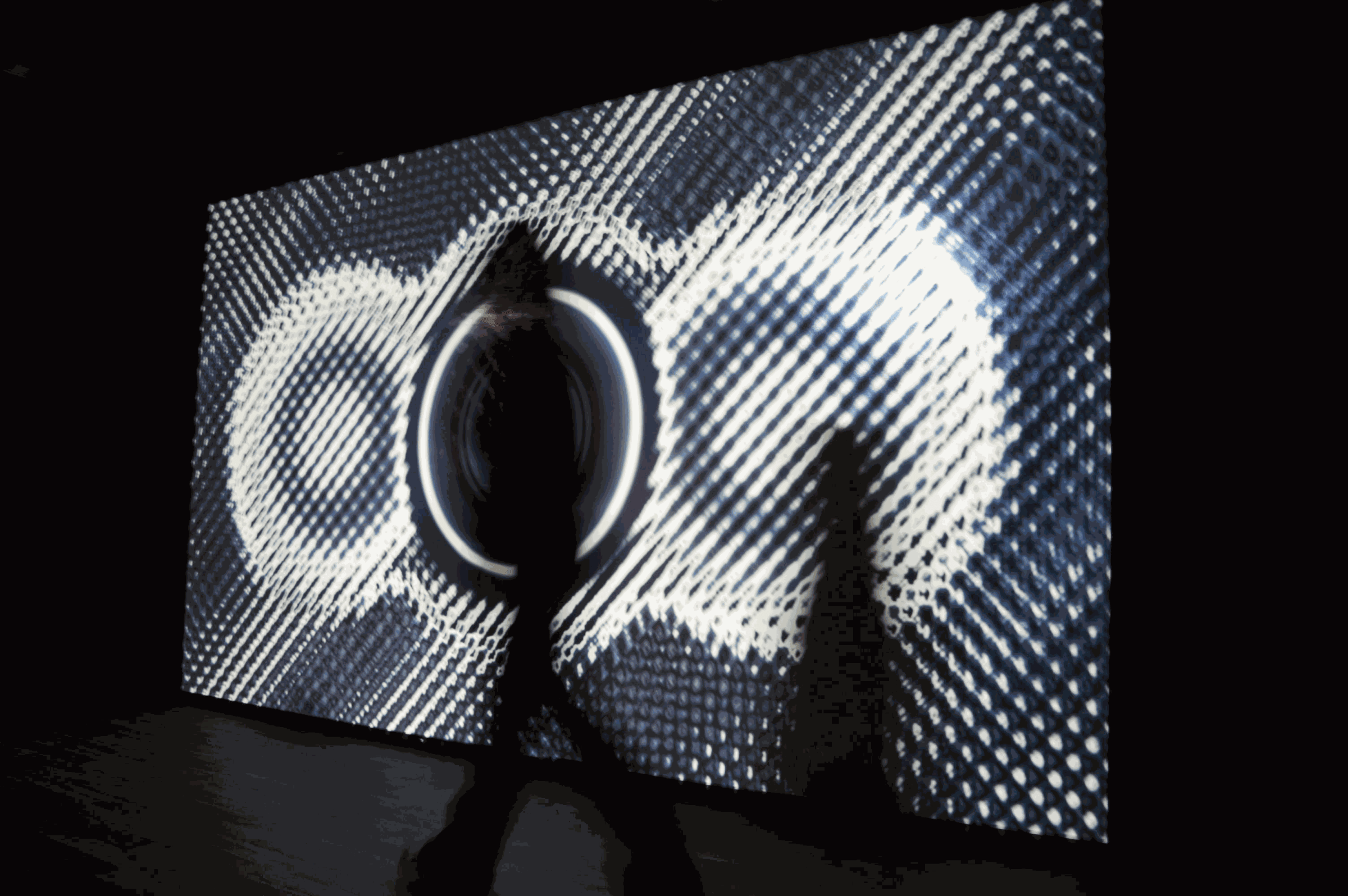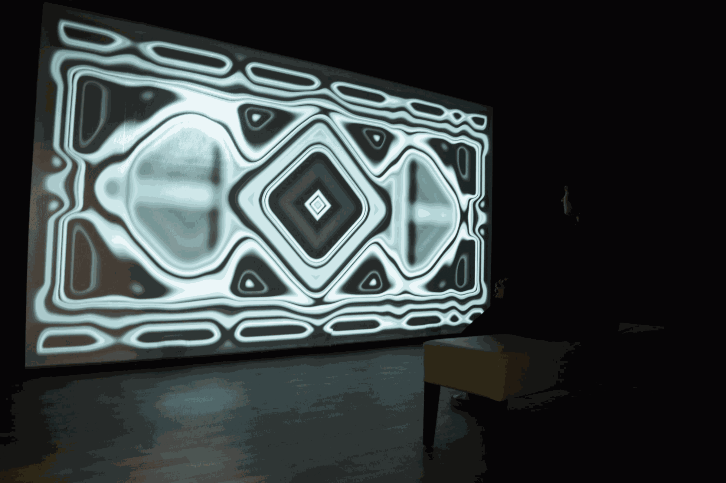 The music within Rituals, created by Audio artist Boreta, invites feelings typically induced by a sound bath. Here, repetitive notes at different frequencies pull the viewer’s focus away from the outside world and into the artwork’s hypnotic visuals.