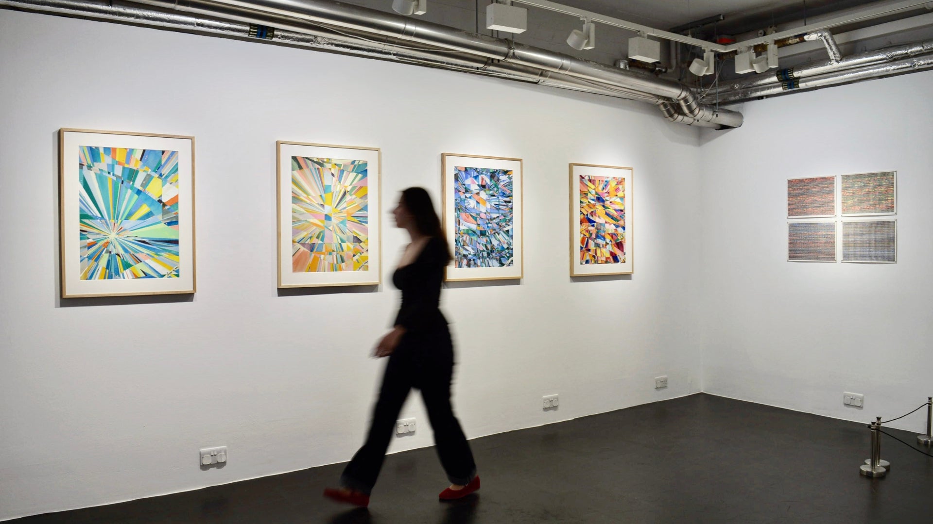 Through code and machinery, He forges new, meaningful connections in the realm of artistic collaboration. The show features a new collection of mixed-media plotter paintings from the series A Conversation (2024), two further unique works, and a live plotter machine that will create five artworks during the exhibition.