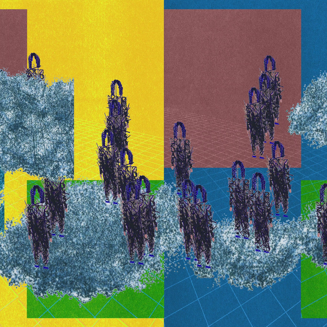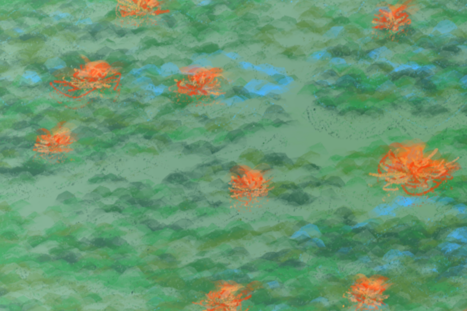 Sarah Ridgley is a generative artist whose practice explores the materiality of code, bridging digital and physical realms. Using Processing and JavaScript, she designs algorithmic brushes that blur the boundaries between hand-drawn and computer-generated forms. Her works emerge from a process of “highly-ordered chaos,” where meticulously structured code interacts with random parameters to generate infinite variations. Ridgley curates these outputs, refining them into final compositions that often incorporate animation and augmented reality. To translate her digital works into tangible pieces, she employs Risograph printing and thermography, layering ink and resin to create textured, luminous surfaces.