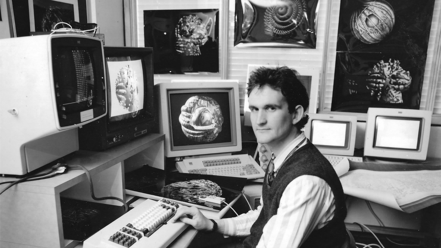 William Latham (b. 1961) is an artist whose pioneering work in computer-generated algorithmic art transformed the boundaries of digital creativity. While a Research Fellow at IBM in the late 1980s and early 1990s, Latham collaborated with mathematician and programmer Stephen Todd to develop the Mutator Evolutionary Art software, a landmark in the ‘artificial life’ branch of AI. Applying evolutionary processes to artmaking originated from Latham’s time as Henry Moore Scholar at the Royal College of Art in the early 1980s, during which he created his FormSynth drawings and etchings. From the mid-1990s Latham pursued projects in the Rave Music scene and developed video game projects, before in 2007 becoming Professor in Computer Art at Goldsmiths University, London. Here he restarted his collaboration with Stephen Todd, and together they resurrected and extended their old Mutator code and pushed the technology into VR, creating immersive experiences which have toured internationally. Most recently Latham has been developing a series of Infinity Mirror monochrome prints which could be described as ‘computer gothic’. Latham’s work is in the permanent collections of The Pompidou Centre, Paris; the Victoria & Albert Museum, London; The Gulbenkian Foundation, London, and The Henry Moore Institute, Leeds. Latham is the curator of the Creative Machine series of group exhibitions, with the most recent iteration opening at Taikang Museum Beijing in November 2024.