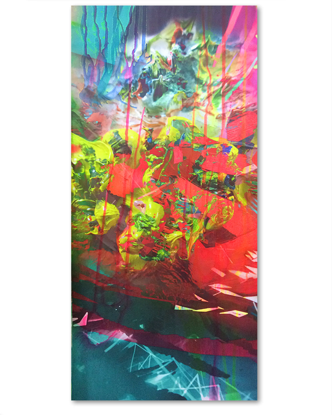 Here’s the 7th painting of 10 (decaptych) combining images of my paint palettes & VR paintings plus under & over layers of paint = phygital. This work is showing at Paint Park, my Arts Council England supported installation at MK Gallery Project Space till March 1st. This work is exhibited in the Grotto, which is a space that travels through 3 phases. The 1st phase is under gallery lighting. Details on the further phases to follow.