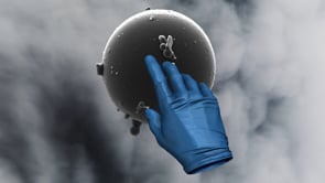 During studio sessions our research shifted from a focus on visual forms of scientific microscopy to an interest in touch and the material composition of air. We started to think about breathing as a form of bodily touch, a connection with different chemical, mineral and biological elements across scales and temporalities. As we developed our VR prototype we worked with our collaborators artsXR to create objects of physical interaction. Our practical experiments involved embedding VR trackers into spherical objects, so that once inside the VR world the user could hold, feel and touch a physically weighted object with their hands whilst moving it inside the VR experience. This created a different mode of interaction from the usual hand held controllers, where the user navigates their movement and action within the VR experience. Instead the user was invited to hold, touch and contemplate an air pollution particle as a simultaneously felt and inferred agent. The digital collage Touch was a way of sketching up these ideas as we moved towards the development of the VR prototype.